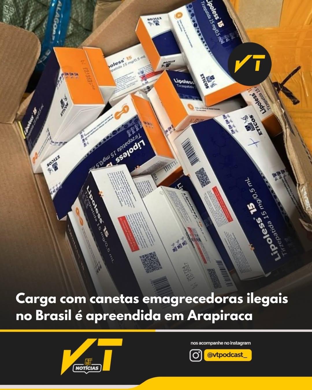 Entre o material retido estavam substâncias de uso restrito, normalmente empregadas no controle do diabetes e na perda de peso, cuja circulação exige comprovação de procedência e autorização sanitária. Os fiscais recolheram 120 ampolas de tirzepatida e 30 caixas do produto conhecido como Lipoless 15 — metade delas com quatro seringas e a outra parte com quatro ampolas por unidade.A apreensão ocorre em meio à proibição imposta pela Anvisa à importação, venda e uso de produtos irregulares como o Lipoless e outras chamadas “canetas emagrecedoras”, itens que não possuem registro no país nem passaram por testes que atestem segurança e eficácia.