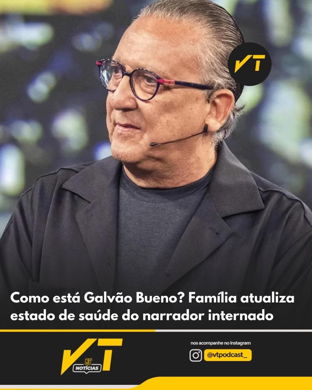 VT Notícias: A família de Galvão Bueno veio a público na quinta-feira, 25, para esclarecer rumores envolvendo o estado de saúde do narrador esportivo, internado na Santa Casa de Londrina desde a noite de Natal. Segundo os familiares, a hospitalização ocorreu por precaução após o comunicador apresentar um mal-estar leve, sem gravidade.