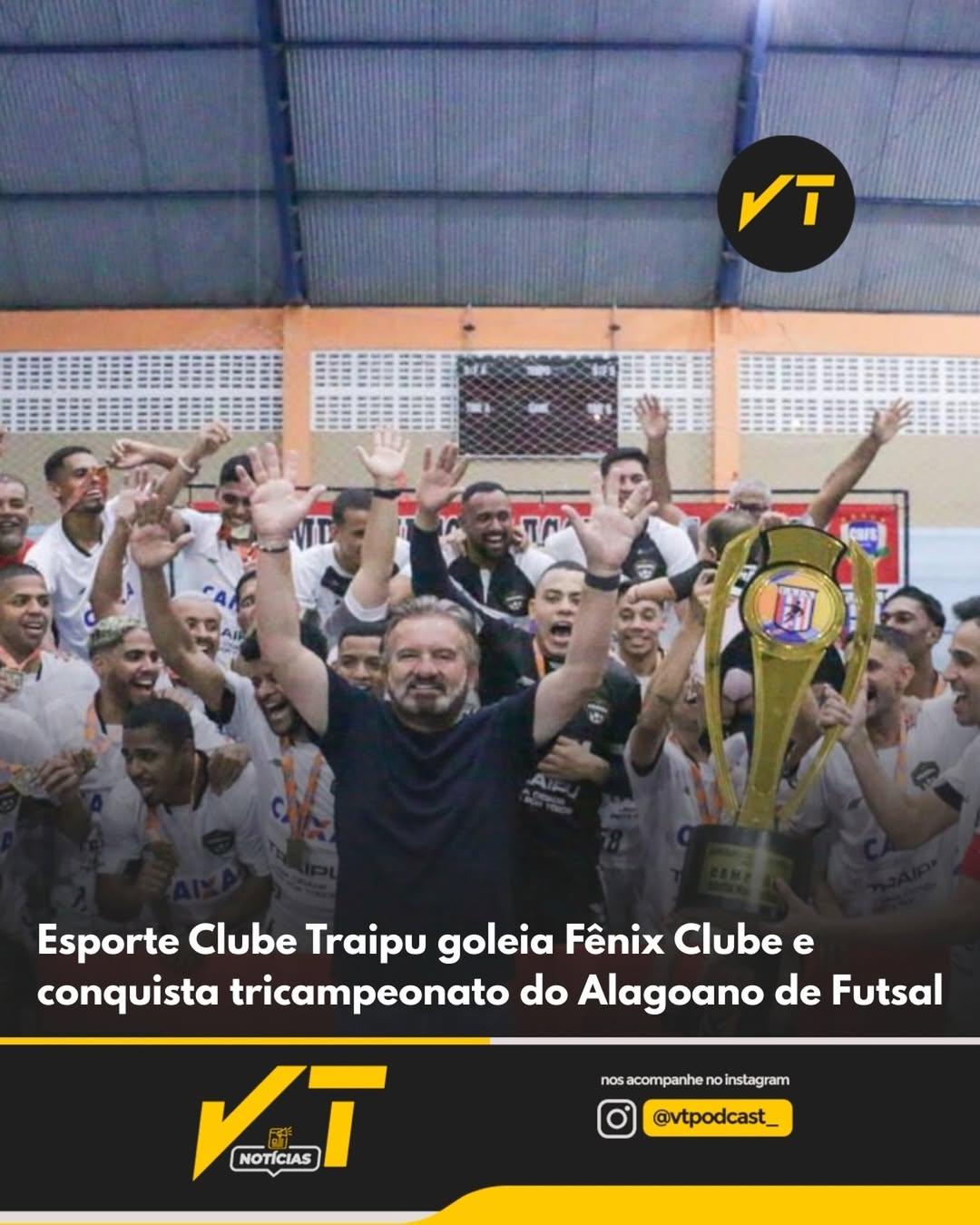 VT Notícias: O Esporte Clube Traipu confirmou o favoritismo e conquistou, na noite desta sexta-feira (12), o título do Campeonato Alagoano de Futsal. Jogando em casa, no Ginásio O Ribeirão, em Traipu, a equipe venceu o Fênix Clube, de Santana do Ipanema, pelo placar elástico de 10 a 2.
