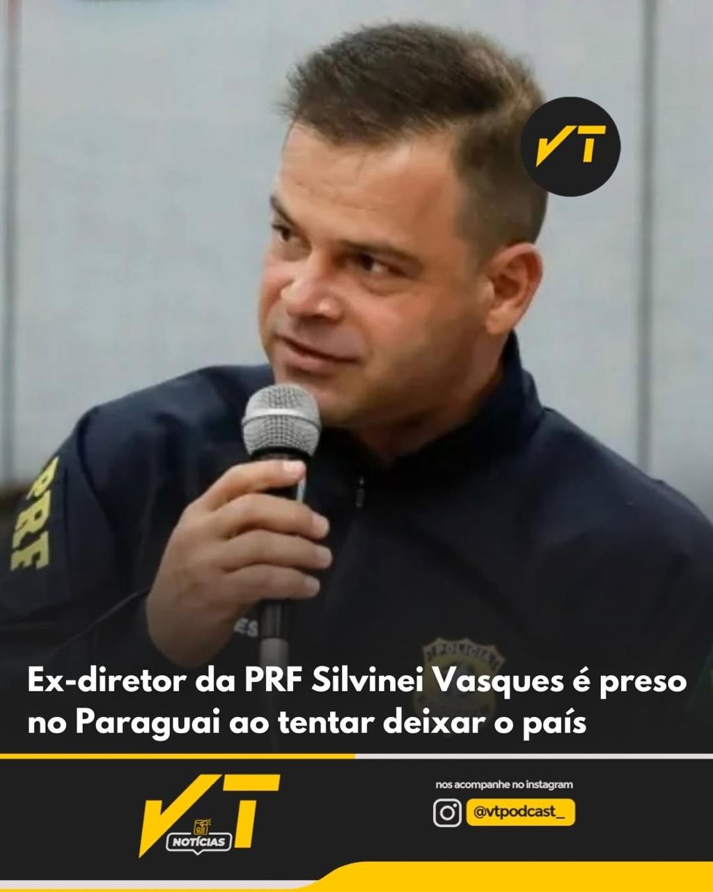 VT Notícias: O ex-diretor-geral da Polícia Rodoviária Federal (PRF), Silvinei Vasques, foi preso na madrugada desta sexta-feira (26) no Aeroporto Internacional Silvio Pettirossi, em Assunção, no Paraguai, ao tentar embarcar em um voo com destino a El Salvador. A informação foi confirmada pelo diretor-geral da Polícia Federal (PF), Andrei Rodrigues.