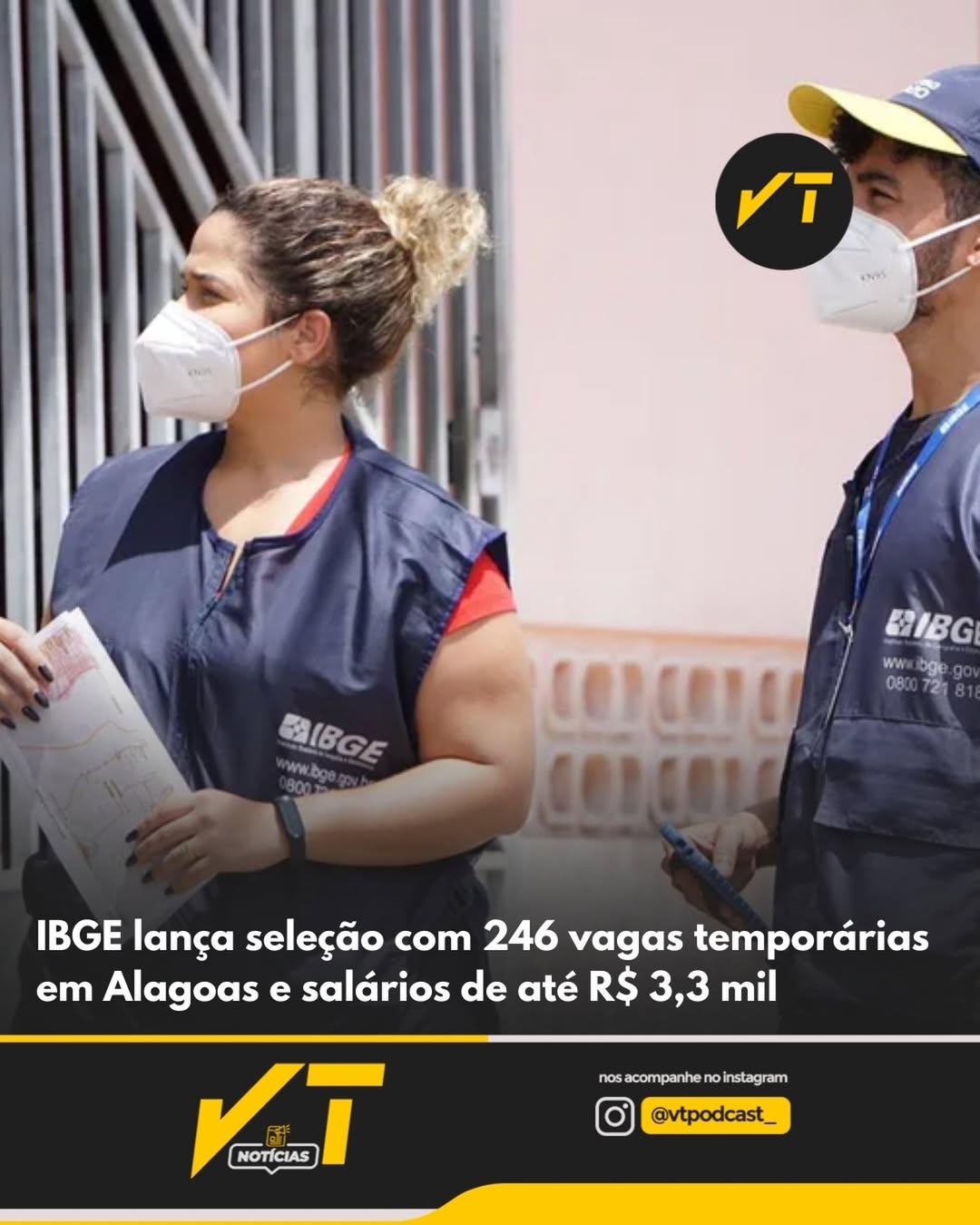 VT Notícias:O Instituto Brasileiro de Geografia e Estatística abriu um novo processo seletivo para reforçar sua operação em Alagoas, colocando no mercado 246 vagas temporárias com salários que chegam a R$ 3.379. As oportunidades contemplam duas funções ligadas à produção e ao controle de informações estatísticas: Agente de Pesquisas e Mapeamento e Supervisor de Coleta e Qualidade. Em todo o país, mais de nove mil postos foram disponibilizados.
