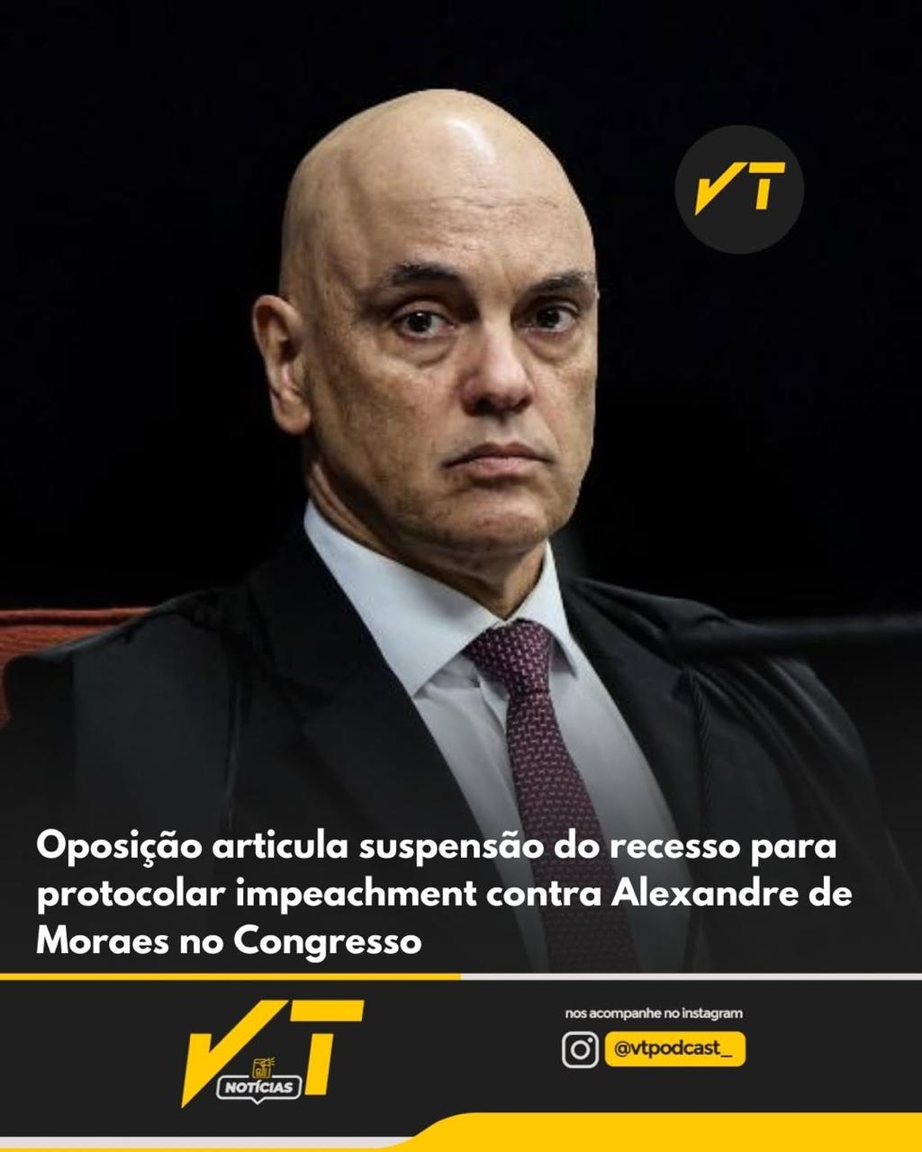 VT Notícias: A oposição na Câmara dos Deputados decidiu acelerar os movimentos políticos durante o período de recesso e articula a apresentação de um novo pedido de impeachment contra o ministro do Supremo Tribunal Federal, Alexandre de Moraes. A estratégia envolve a convocação extraordinária de parlamentares para Brasília, com o objetivo de formalizar a iniciativa já na próxima semana.