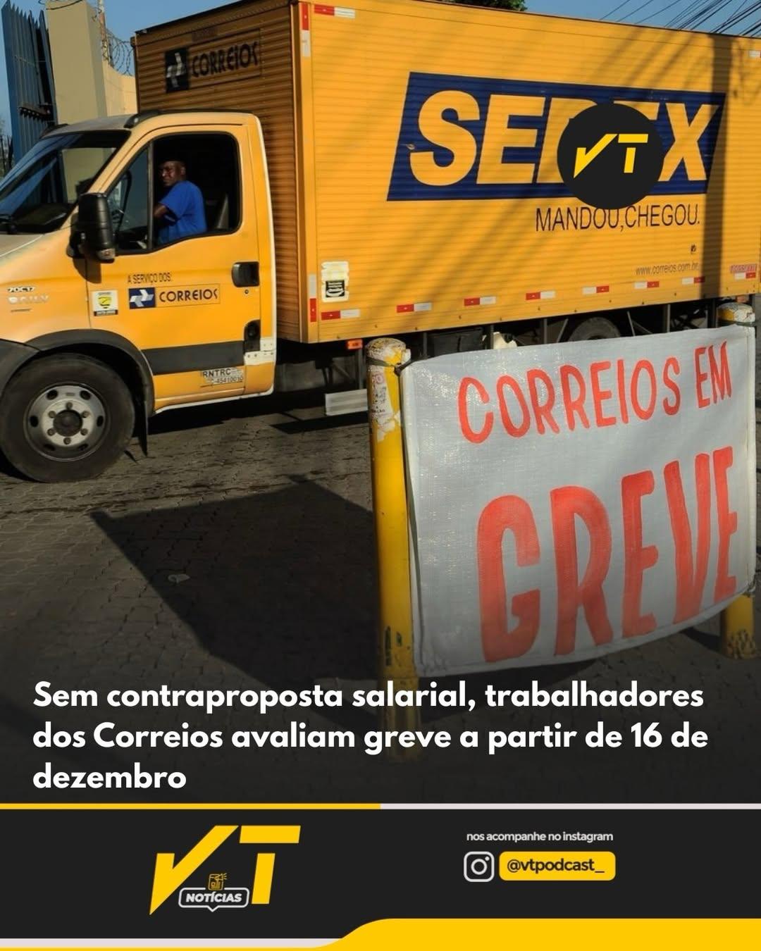 VT Notícias:A possibilidade de paralisação nos Correios ganhou força após o sindicato da categoria indicar greve para a próxima terça-feira, 16 de dezembro. A mobilização ocorre em meio ao descontentamento dos trabalhadores com medidas adotadas pela empresa, vistas como perdas de direitos históricos.