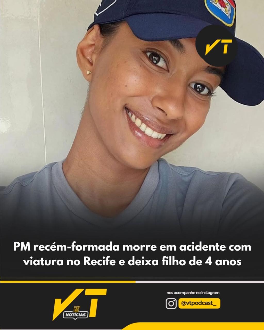 VT Notícias: A policial militar que morreu em um grave acidente envolvendo uma viatura da corporação e um carro de passeio, na madrugada desta segunda-feira (12), no Recife, havia se formado recentemente e integrava a turma de aprovados no concurso público mais recente da Polícia Militar de Pernambuco.
